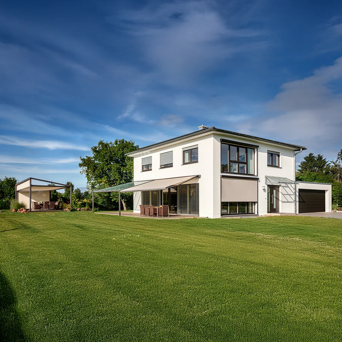Elegante Markisen mit innovativer Technik sorgen für Sonnenschutz und Wohlfühlatmosphäre.
